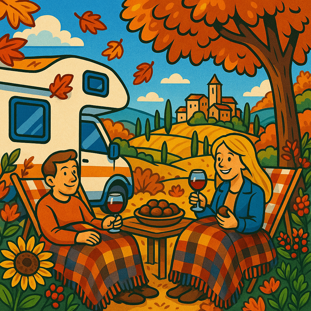 Il loro obiettivo? Scoprire borghi medioevali, camminare tra boschi dipinti di rosso e giallo, assaggiare castagne e vino novello. Ma appena salgono a bordo del loro camper, un pensiero sorge spontaneo: “Con il tempo che cambia ogni ora… avremo fatto la valigia giusta?”
