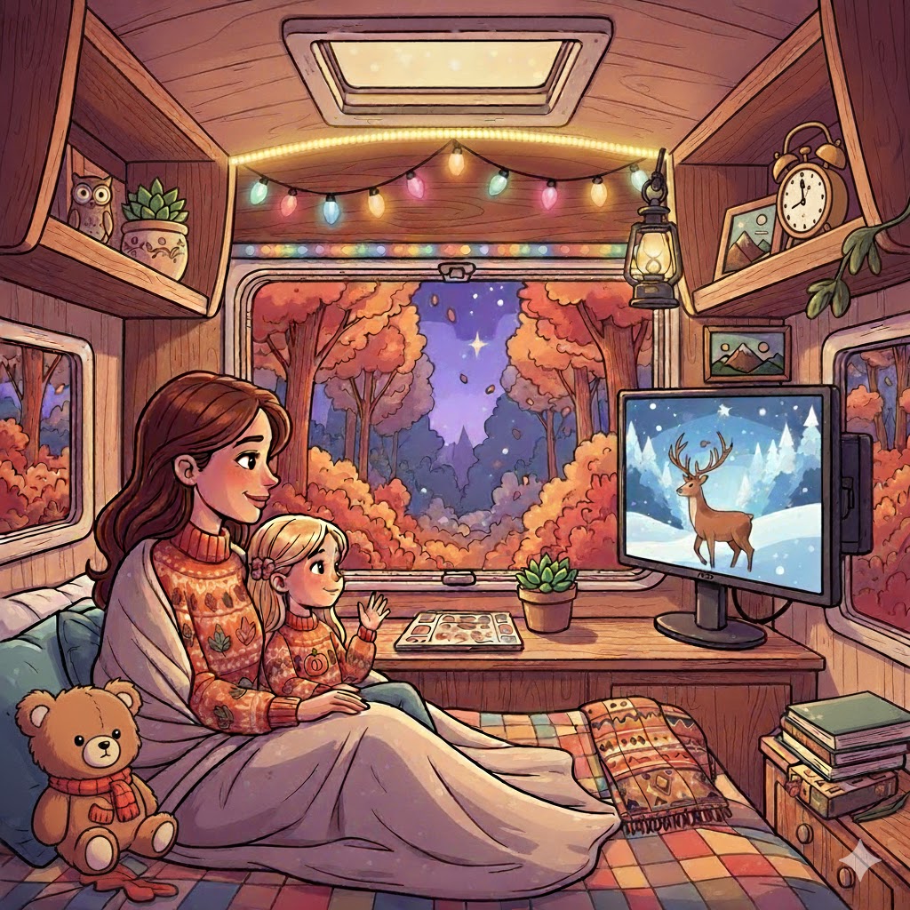Il bosco mette i colori, tu metti la luce giusta. Con una temperatura calda dove ti rilassi, neutra dove lavori e controlli semplici da usare, il camper diventa un rifugio che ti accompagna dal caffè del mattino alla tisana della sera.
