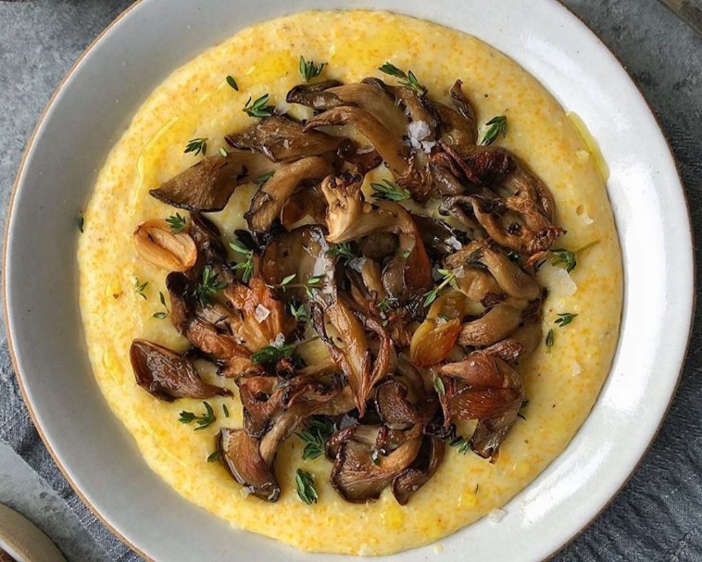 Quando arrivò la sera, vinse la comodità intelligente. I funghi affettati si abbronzarono in padella con erbe secche; intanto l’acqua bolliva per la polenta istantanea, pronta in pochi minuti. Ciotole fumanti, condimento sopra e piedi sul tappetino: la versione più rilassata dell’idea di “cena perfetta”.