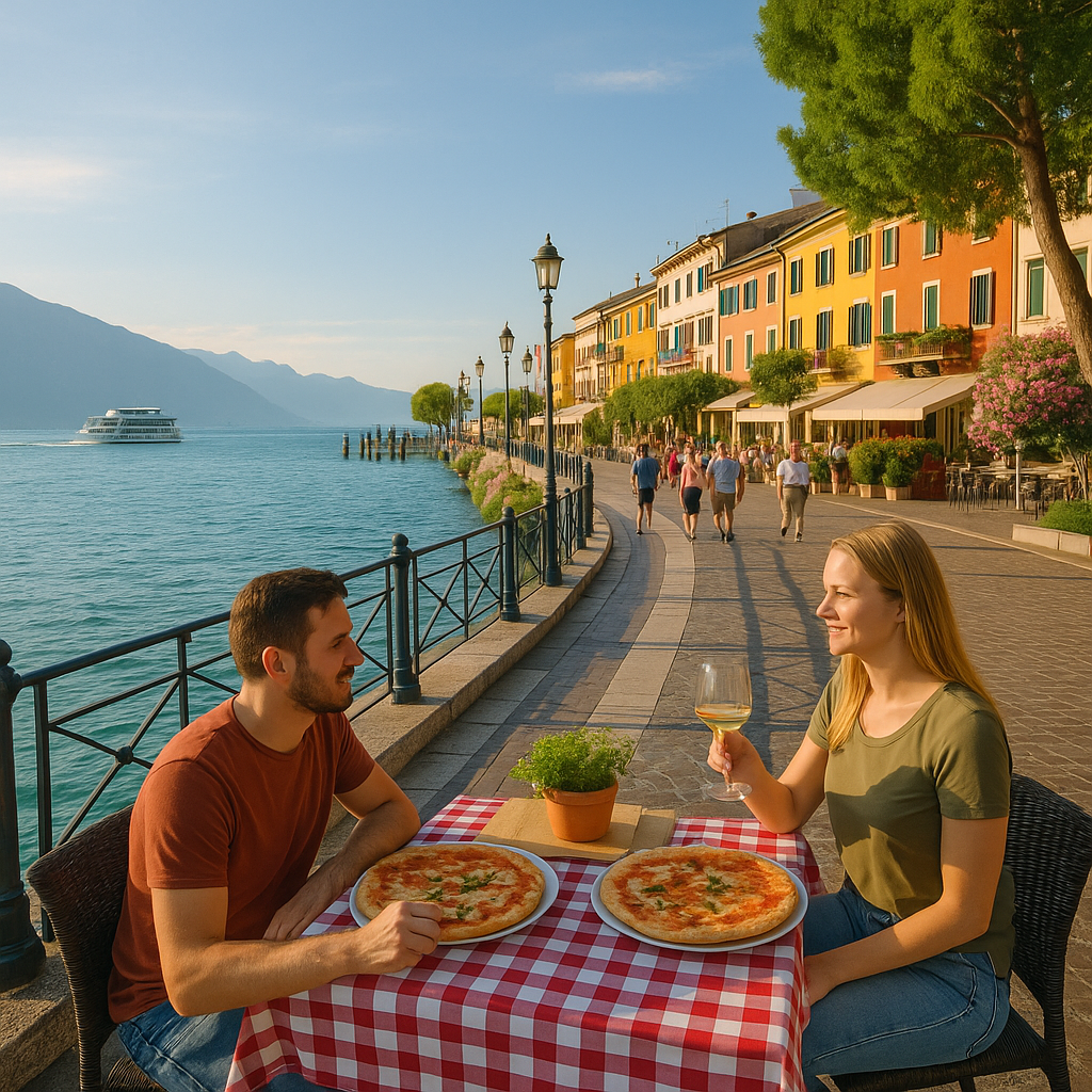 Da Sirmione ci siamo spostati verso Desenzano, città elegante e vibrante. L’area sosta si trova appena fuori dal centro, ma in ci si arriva facilmente. La prima cosa che ci ha colpiti è stato il lungolago pieno di vita: bambini che corrono, coppie a passeggio e tavolini che profumavano di pizza appena sfornata.