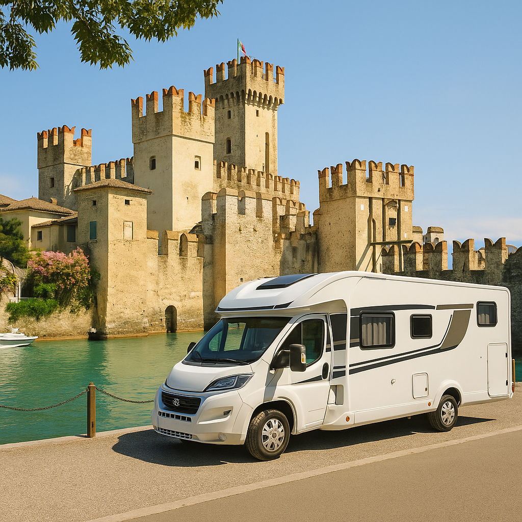 Il nostro viaggio è iniziato da Sirmione, un lembo di terra che si allunga nel lago come una piccola penisola. Abbiamo trovato un’area camper attrezzata a pochi minuti a piedi dal centro: ordinata, pulita e con piazzole ampie.